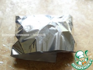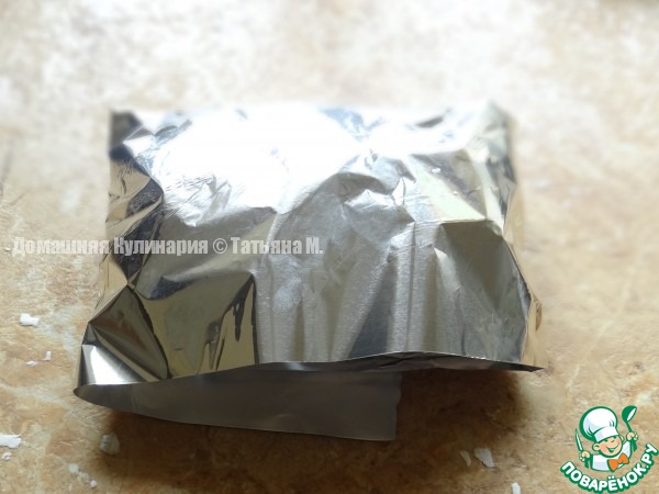 На этом этапе можно завернуть закуску в фольгу, убрать в холодильник до похода на природу (может лежать сутки) или отправить в заморозку до лучших времен.
