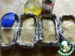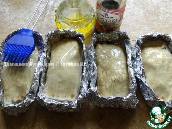 Оставшийся соевый соус смешать с маслом и помазать верх у закуски.