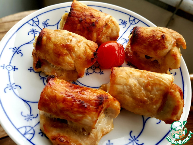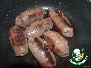 Раскалить масло в скавородке и крепко обжарить там рулетики.