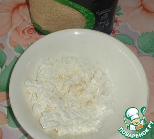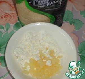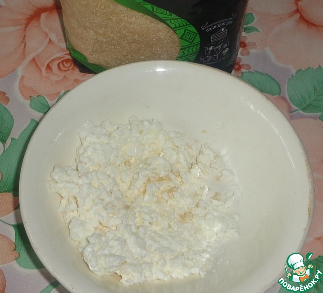 Приготовим начинку. Смешиваем творог с сахаром. Если творог сухой, то добавьте сметаны.