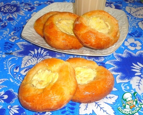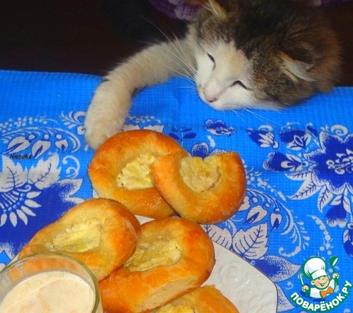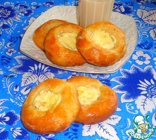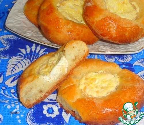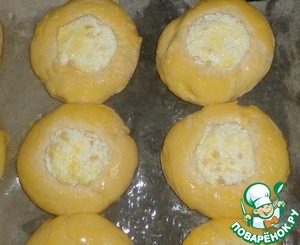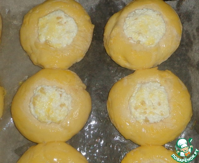 Классические ватрушки с творожной начинкой и кусочками ананаса.