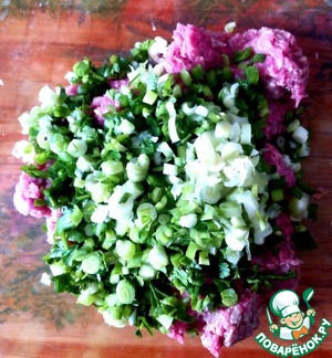 В принципе, зелень можно пропустить через мясорубку вместе с мясом, но мне больше нравится так. -