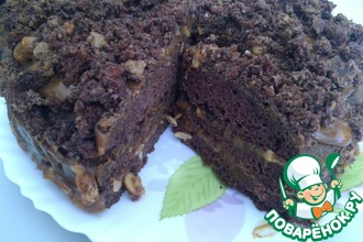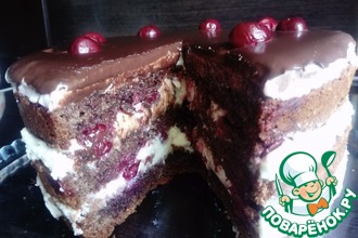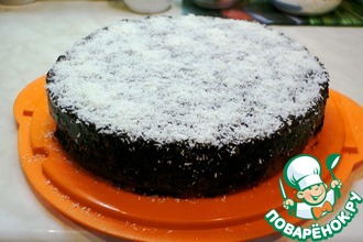 15. Выложить верхний корж корочкой вниз на сервировочное блюдо и намазать кремом. Накрыть вторым коржом и верх тоже намазать кремом.