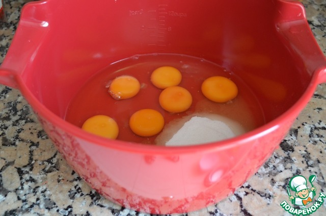 1. Положить яйца, сахар и ванильный сахар в большую миску.