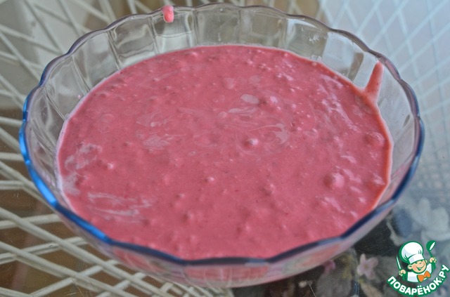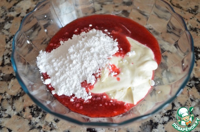 13. Малиновое пюре добавить к сметане и размешать.