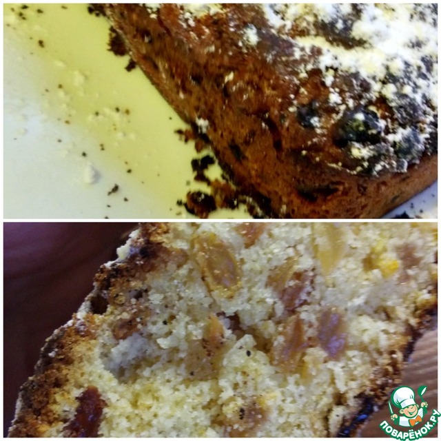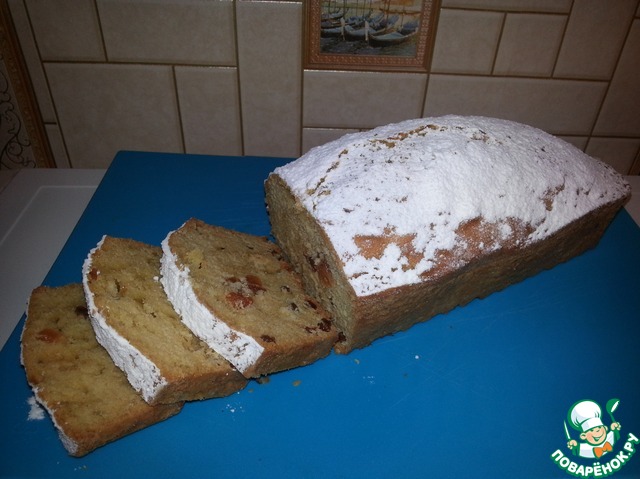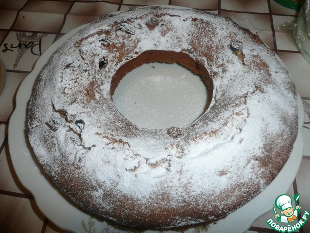 Выпекаем кекс в предварительно разогретой до 160 градусов духовке от 80 минут до 1,5 часов (ориентируйтесь на свою духовку). Мне хватило 80 минут. Готовность проверяем зубочисткой. Готовый кекс охлаждаем, выкладываем на решетку и посыпаем сахарной пудрой. Подаем кекс полностью остывшим.