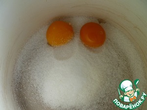 Желтки и сахар, ванильный сахар в кастрюлю. -