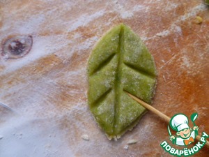 Дальше с помощью зубочистки я сделала на листике линии, имитируя настоящий листик.