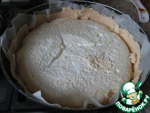 Массу выложить в форму, выстланную специальной бумагой. Или бумагу смазать маслом и обсыпать мукой, так указано в рецепте. Выпекать 2-2,5 часа при температуре 100-110 гр. по Цельсию. Важно выпекать при небольшой температуре. У моей духовки минимальная температура 150 градусов. В этом случае ее необходимо выключать на некоторое время. Во время выпечки белок верх покрывается коркой. Её можно оставить или отломить. Этот торт не вынимают из духового шкафа до полного его остывания.