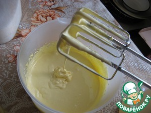 Тесто 2 вида: 10 желтков взбивают в пену, добавляют ванили и сахар и снова взбивают, затем добавляют соду, погашенную уксусом, какао, муку. Перемешивают. Форму выложить специальной бумагой (или смазывают маслом, обсыпают мукой) и выливают в нее тесто. Выпекать на небольшом огне минут 40.