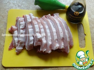 Свинину нарезать на пластины, замариновать в соке лайма и соевом соусе на 20-30 минут;