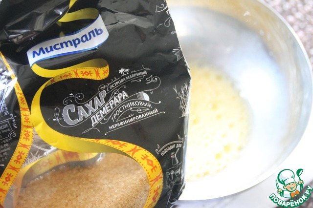 Я использовала тростниковый, он придает прекрасные карамельные нотки. Но можно использовать и обычный сахар. -
