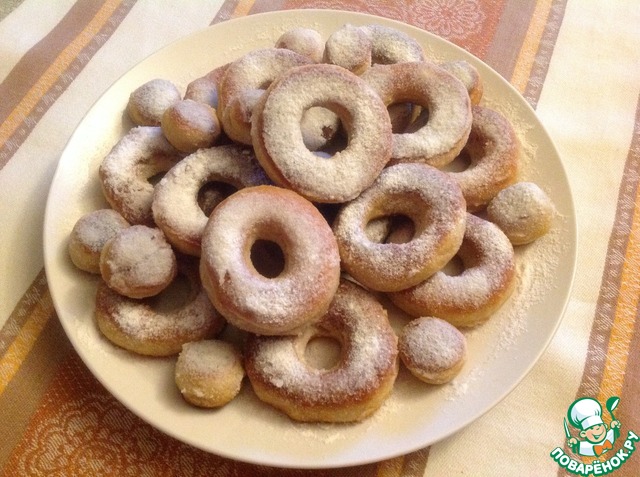 Признаюсь, я пончики никогда не любила... зато дома всем хором захотелось, а я никогда сама не жарила их, результат действительно удивил (в хорошем плане), домашние - они совсем другие! Вкуснююююючиииеее))) Немного истории... Как гласит легенда: давным-давно, неизвестный историкам человек нечаянно выпустил из рук мешок с мукой в кипящее масло, и так получился первый пончик. С той поры в различных странах мира появились свои рецепты по приготовлению пончиков. Предлагались всевозможные виды теста, различные добавки, пончики стали есть как горячими, так и холодными… Доктор Маллинс сделал вывод, что вид современных пончиков округлой формы появился в Соединенных Штатах на стыке семнадцатого века, когда в Большом Яблоке и иных громадных городах получило широкое распространение тесто olykoek («масляный пирожок»). Впервые пончик упоминается в поваренной книге 1803 года (английского писания)— в ней он был включен в перечень американских кулинарных рецептов Это, наверное, самый быстрый, самый простой и, ну, оооочень вкусный рецепт пончиков! Получаются лёгкие и воздушные, совсем не жирные:)