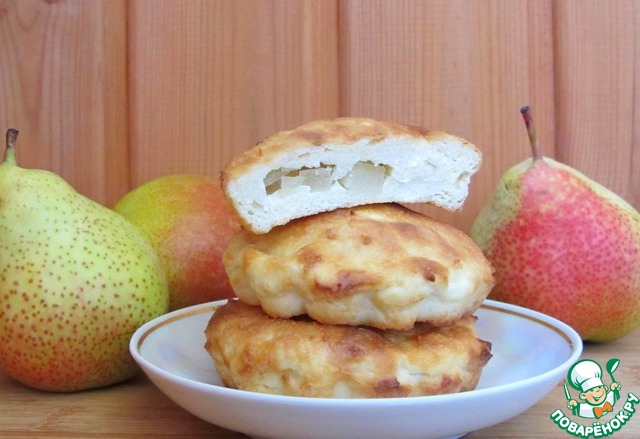 Из массы сформировать лепешку и кладем на нее грушу. -