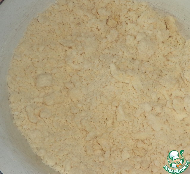 Высыпаем в миску муку и добавляем кусочки маргарина. -