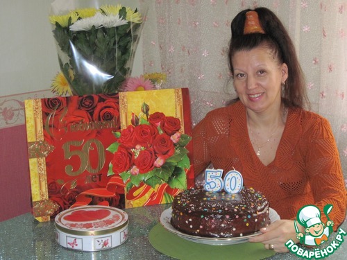 Сверху украсим торт по желанию. Этот торт я приготовила для сестренки на юбилей, на ее 50-летие.