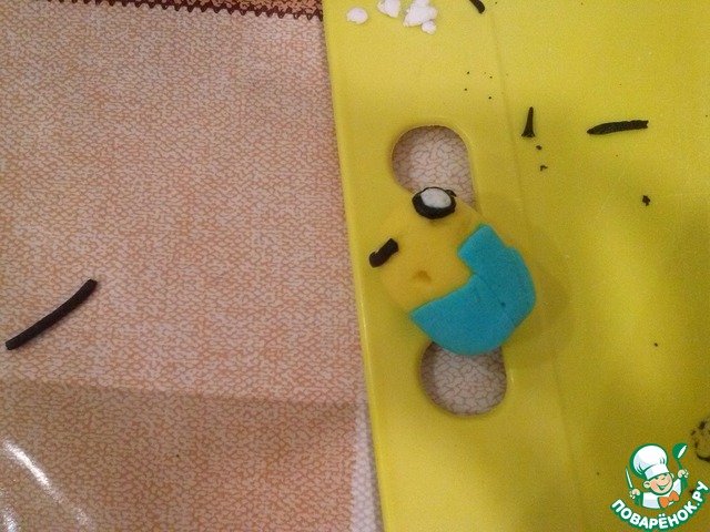 Делаем заготовки:сначала тельце, потом ножки, ручки и т. д.). Если мастика успевает подсыхать на маленьких частях, добавляем капельку водички (я это делаю кисточкой)
