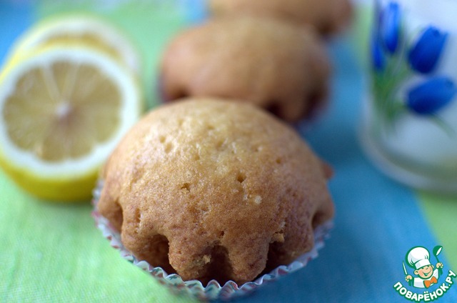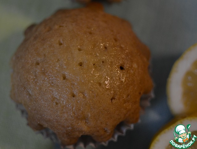 Так как я люблю выпечку с лимоном, а дочь - категорически нет, приходится делать так: готовлю сироп из лимона и сахара (по 2 стол. ложки), разогреваю до растворения сахара. Некоторое количество кексов прокалываю шпажкой и пропитываю лимонным сиропом.
