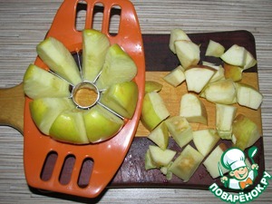Яблоки вымыть, удалить сердцевину, нарезать кубиками.