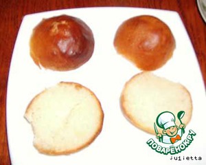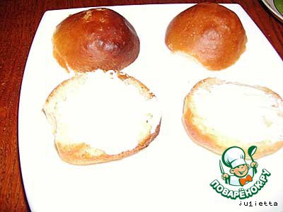 Булочки разрезать пополам (хлеб нарезать на куски).