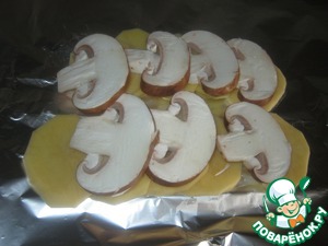 Рецепт «Сёмга с королевскими шампиньонами на картофеле»:
