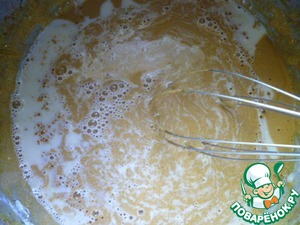 Затем добавить просеянные сухое молоко и крахмал, перемешать.