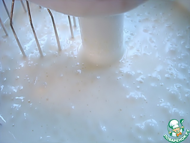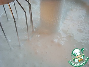 Не прекращая взбивания, влить горячий сироп в белки и продолжать взбивать еще 10 минут.