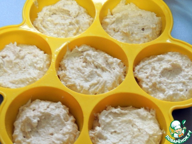 Раскладываем в смазанные маслом формочки и выпекаем при 185*С 35-45 минут.