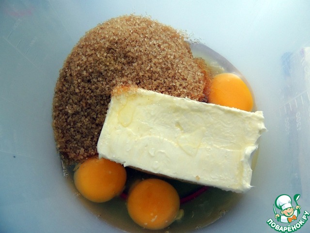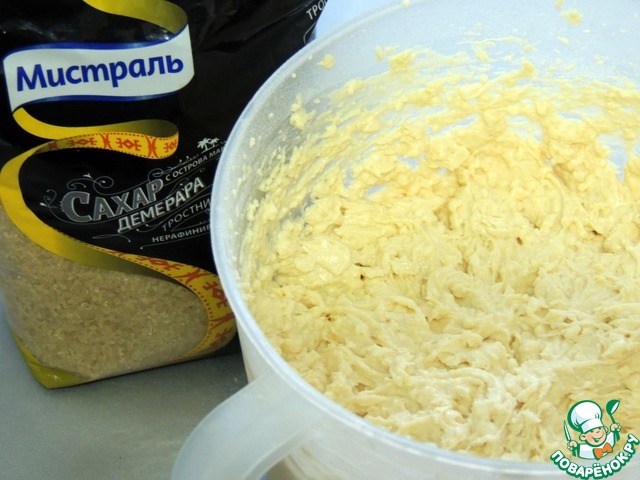 Соединяем сахар Мистраль с яйцом и маргарином.