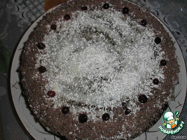 Украсить торт тертым шоколадом. Я добавила еще свежую бруснику.