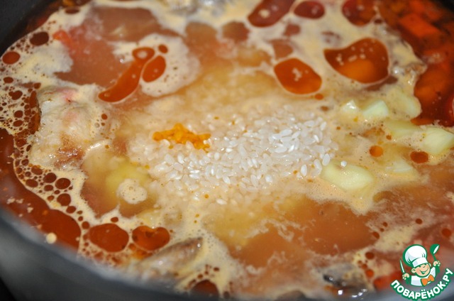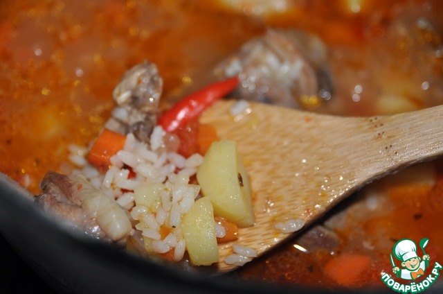 Рис должен хорошо развариться. Суп должен быть густым, но не каша. Учтите, что при настаивании суп ещё более загустеет. -