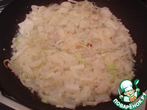 Лук-порей (белую часть) очистить, порезать полукольцами и обжарить на растительном масле до золотистого цвета, добавить перец, кориандр и зиру, все хорошо перемешать и снять с огня и дать остыть.