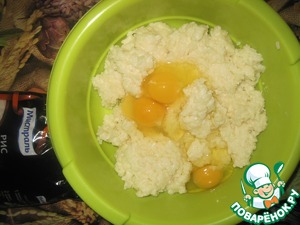В получившуюся охлажденную до 50 градусов рисовую массу добавляем яйца, тщательно перемешиваем.