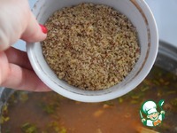 Рис (я использовали рис ТМ "Мистраль" Акватика микс (смесь пропаренного и дикого риса)) промываем хорошо и добавляем в бульон. Перемешаем. Варим 10 мин. |