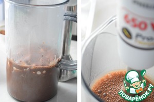 Выливаем напиток в чашу блендера и хорошо взбиваем до однородности. Разливаем в кружки и посыпаем тертым шоколадом.