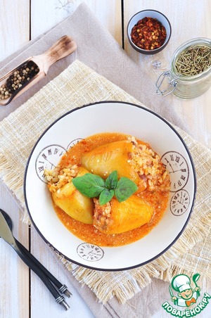 Подавать перцы я люблю в большом количестве подливы, с хлопьями чили перца, ароматными травами, молотым черным перцем, свежей зеленью и сметаной.