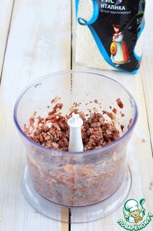 Обжареные сердечки с грудинкой крупно смолоть в блендере или пропустить через мясорубку с крупным решетом.