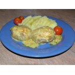 Руки смочить холодной водой и лепить голубцы. Выложить их в форму для запекания, налить чуть-чуть воду на дно. Поставить в разогретую духовку на средний огонь минут на 30-40.