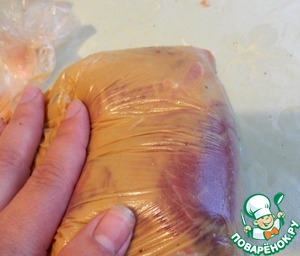 Горчица сделает мясо более мягким, но в конечном блюде ее вкус не чувствуется. Время прошло промываем мясо от горчицы.