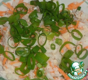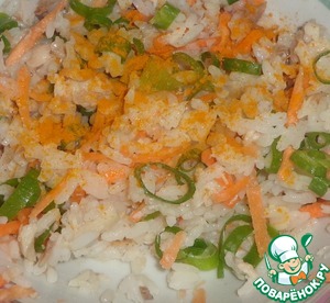 Добавляем куркуму, чтобы начинка стала яркой и праздничной. Солим и перчим по вкусу.
