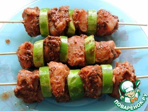 Одеваем кусочки мяса чередуя с овощами на шпажки