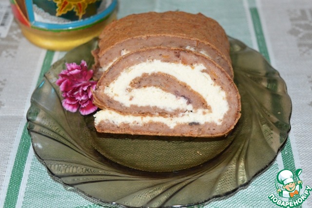 Крем! Тут уже кто какой любит. Можно просто сгущёнкой перемазать. А вообще на сайте есть рецепты прекрасных вкусняшек, которыми можно перемазать наш рулетик.
