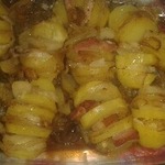 Через 45 минут открыла духовку (запах с ног сшибает), сняла фольгу, полила вытопившимся жиром и соусом картофель и снова в духовку минут на 15-20 (зависит от размера картошки). Поливала раза два