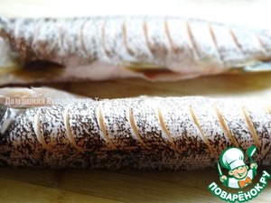 Выложить щуку на фольгу, обмазать со всех сторон маринадом, включая надрезы и внутри головы;