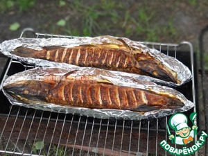 Жарить рыбу на углях, если последние слишком жаркие, то жарить на решетке над углями до готовности;