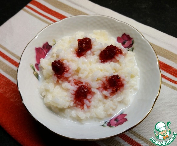 Рецепт «Рисовая каша с малиновым вареньем»: