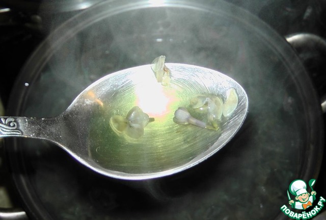 • Даем покипеть на меленьком огне минут 10. Цвет у навара зеленоватый.