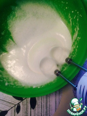 Пока тесто готовится, сделаем крем. Белок и сахар взбить миксером до загустения.