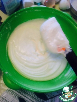 Добавляем сметану и опять взбиваем до стойких пиков. (я сделала более жидковатым, но советую делать гуще)
