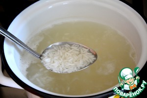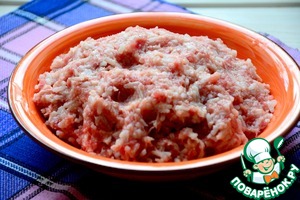 Мясной фарш смешать с рисом (можно добавить по желаю лук). Посолить, добавить перец или приправу по вкусу